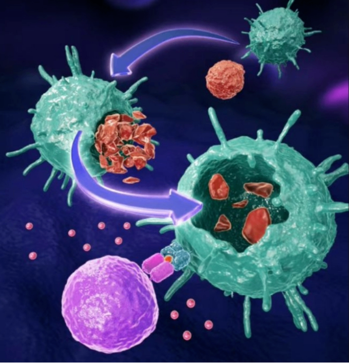 5. Engulf and remove senescent cells throughout the body: As we age, the number of senescent cells in the body gradually increases. Immune cells are like hardworking cleaners, actively identifying and engulfing these senescent cells. They break down senescent cells into small molecules that can be reused or excreted by the body. By removing senescent cells, immune cells help maintain the body's youthfulness, slow the aging process, and keep the body functioning better and more vibrant.